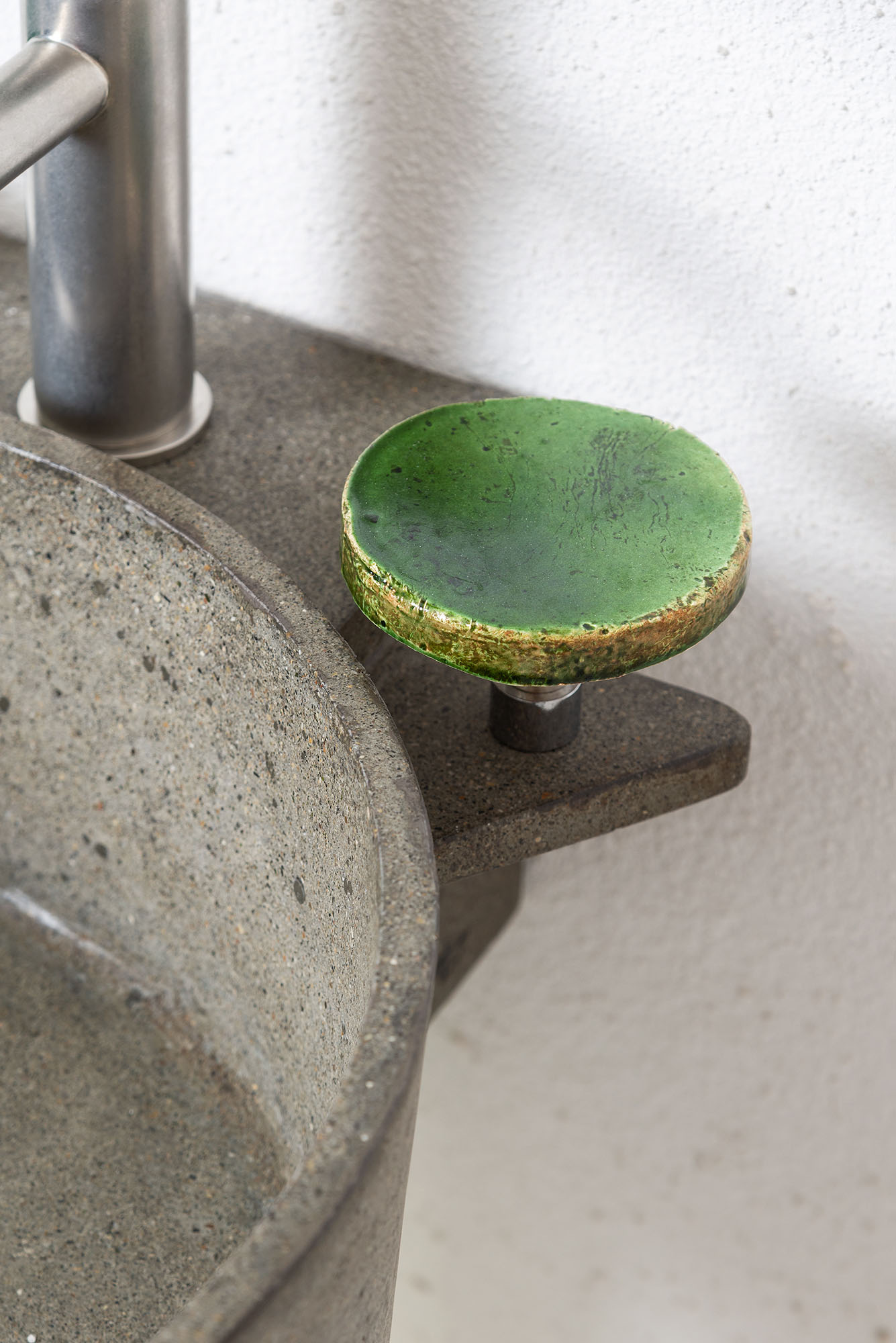 Stai vedendo: “Frog” Lavabo da parete in cemento con porta saponi e porta asciugamani 2.240,00 IVA inclusa
